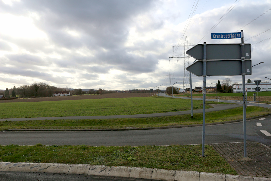 GIB_09_Greste: Das Gewerbegebiet Greste soll auf dieser Fläche zwischen der Fettpottstraße und dem Gewerbegebiet im Hintergrund bis zur B66 erweitert werden können.