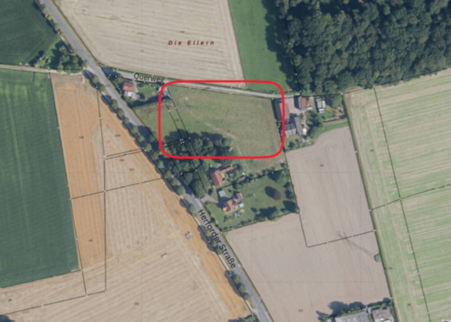 Am Samstag, 29. November 2025, von 10 Uhr bis 13 Uhr an der Herforder Straße / Querweg zwischen Schuckenbaum und Nienhagen auf der Grünfläche. Auf der Karte ist die Fläche rot markiert.