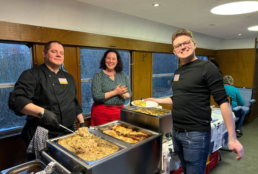 Die Fahrt mit dem historischen Zug beginnt um 17 Uhr am Bösingfelder Bahnhof, geht von dort aus über Alverdissen nach Barntrup und wieder zurück. Im Zug gibt es ein klassisches Krustenbratenbuffet mit Bayrisch Kraut aus regionaler Herkunft. Zudem werden ein Getränk und ein kleines Dessert im Rahmen des Fahrpreises serviert. Die Fahrt inklusive des Aufenthaltes für den Gang zum Buffet wird etwa dreieinhalb Stunden dauern.